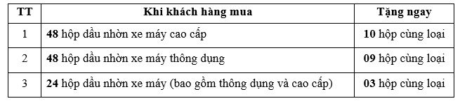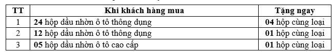 - Dầu mỡ nhờn dùng để khuyến mại không được hưởng khuyến mại tiếp theo.