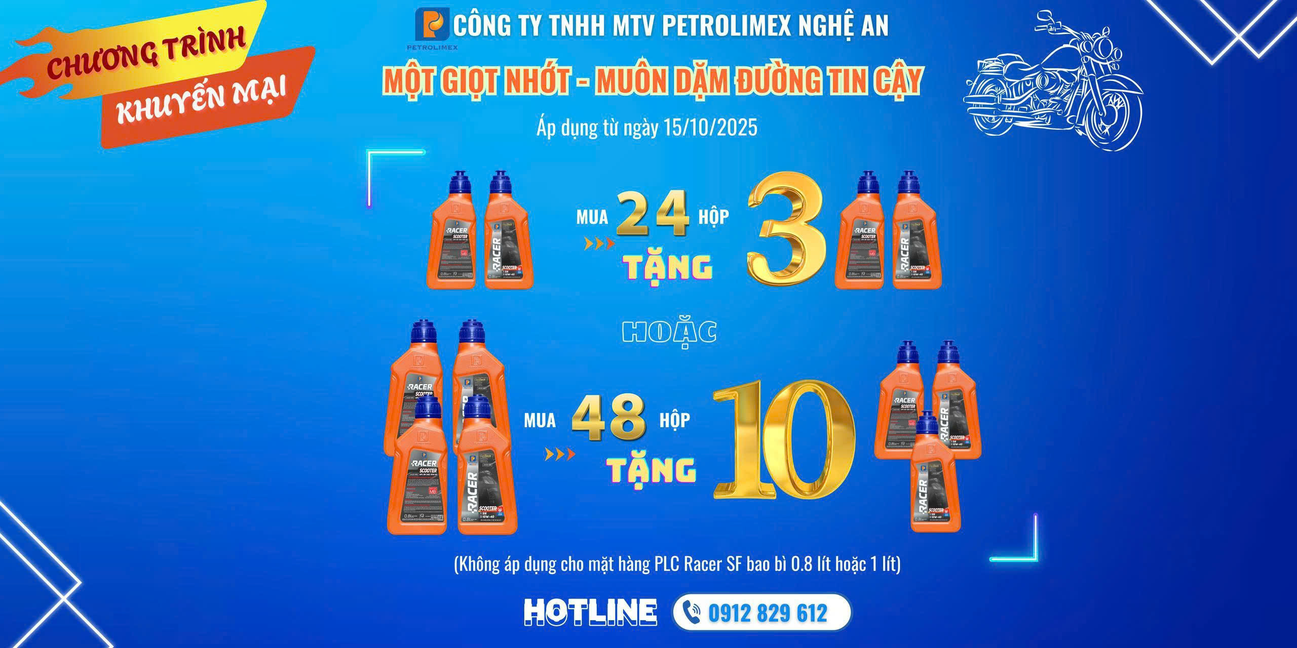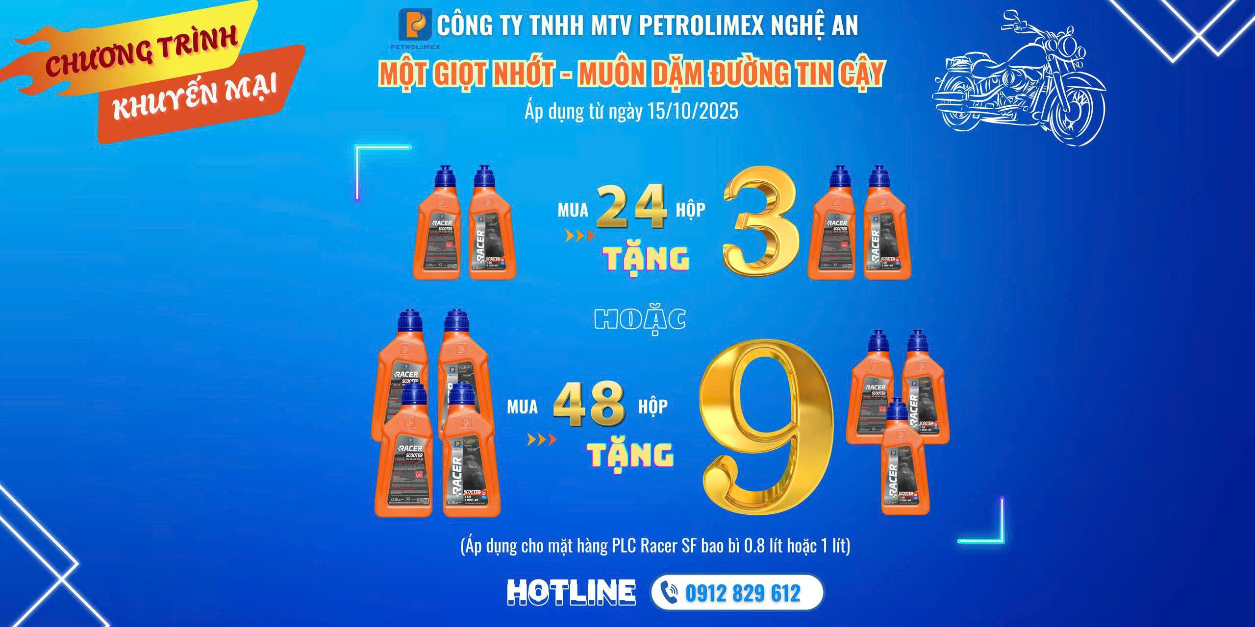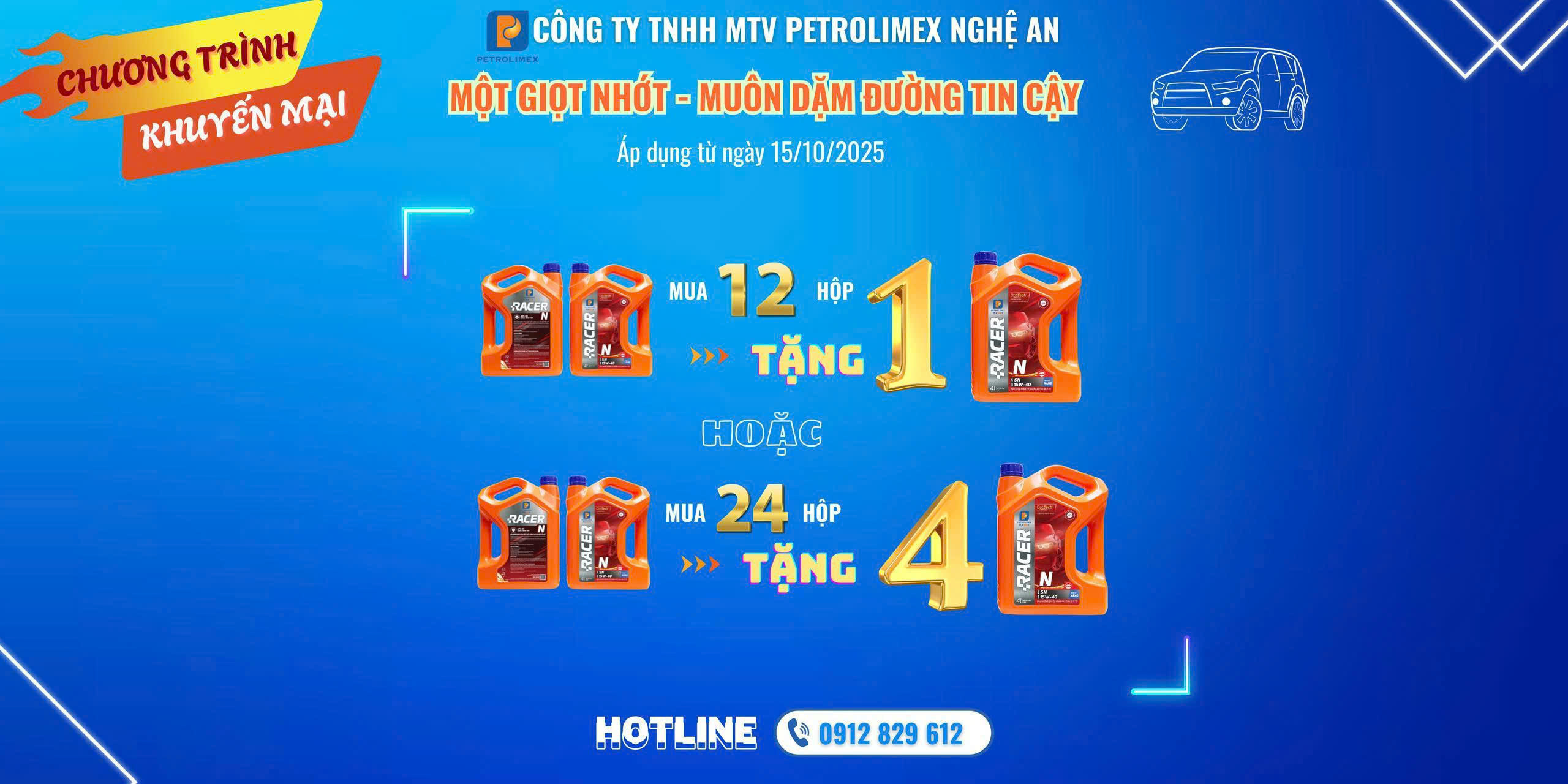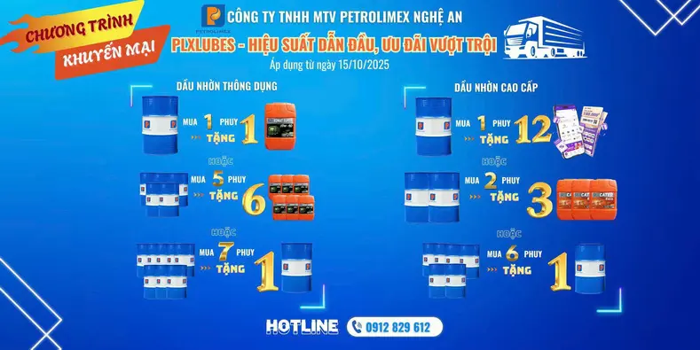 Nhằm tri ân sâu sắc Quý khách hàng đã tin tưởng lựa chọn và đồng hành cùng sản phẩm Dầu mỡ nhờn Petrolimex trong suốt thời gian qua, đồng thời tiếp tục lan tỏa những giá trị cốt lõi của thương hiệu, Petrolimex Nghệ An trân trọng thông báo triển khai chương trình khuyến mại Dầu mỡ nhờn Petrolimex áp dụng trong Quý IV/2025.