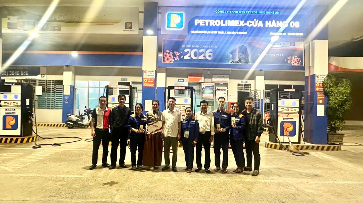 Đặc biệt, trong không khí thiêng liêng của đêm Giao thừa, khi nhiều người đang quây quần bên gia đình, Ban Lãnh đạo Công ty đã trực tiếp đến thăm hỏi, động viên và chúc Tết người lao động đang làm nhiệm vụ tại: 2 Kho Xăng dầu, Trung tâm Kinh doanh Tổng hợp, Các cửa hàng xăng dầu trên địa bàn lân cận và các CHXD Cụm Tây Bắc Nghệ An. Sự hiện diện của lãnh đạo tại các đơn vị đang trực Tết không chỉ là lời chúc mừng năm mới, mà còn là nguồn động viên tinh thần to lớn, tiếp thêm niềm tin và tự hào cho những người đang ngày đêm giữ nhịp vận hành an toàn, thông suốt.