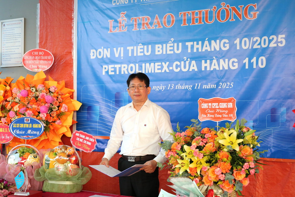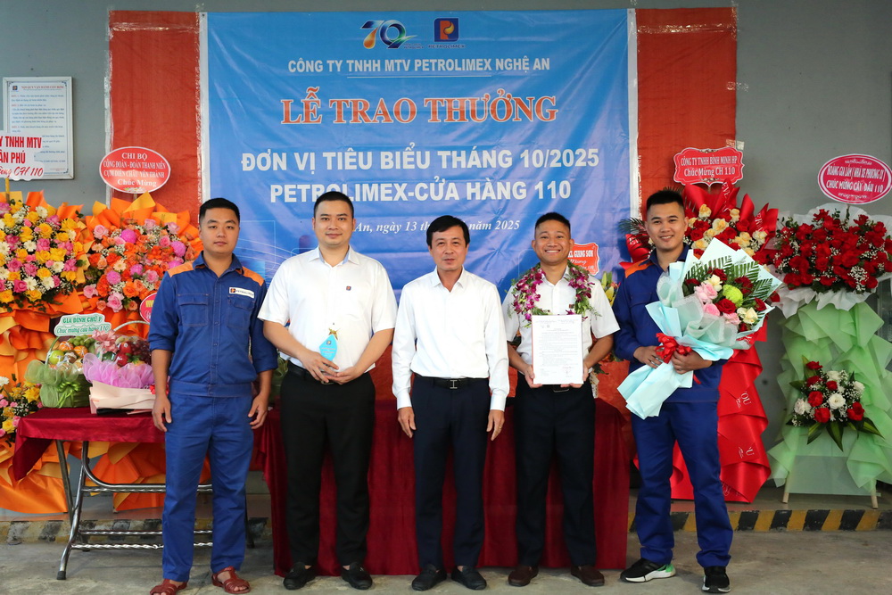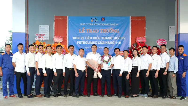 Chiều ngày 13/11/2025, tại Petrolimex – Cửa hàng 110 (xã Hùng Châu, tỉnh Nghệ An), Công ty TNHH MTV Petrolimex Nghệ An đã tổ chức Lễ trao thưởng "Đơn vị tiêu biểu tháng 10/2025" trong không khí trang trọng và đầy cảm xúc. Sau gần 20 năm hình thành và phát triển, tập thể Petrolimex –Cửa hàng 110 đã chính thức chạm tay vào danh hiệu cao quý, thành quả xứng đáng cho hành trình bền bỉ, đoàn kết và không ngừng đổi mới.