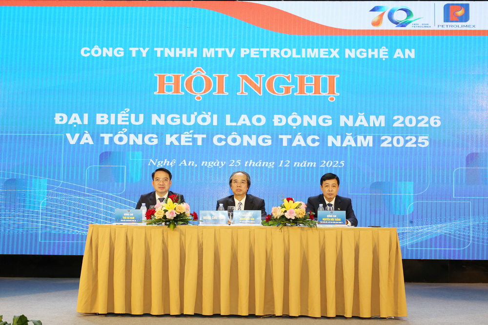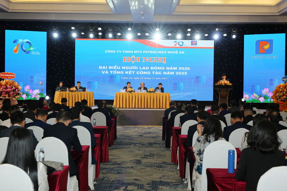 Trong không khí dân chủ, đoàn kết và trách nhiệm, Công ty TNHH MTV Petrolimex Nghệ An (Công ty/Perolimex Nghệ An) đã tổ chức Hội nghị tổng kết công tác năm 2025 và Hội nghị Đại biểu Người lao động năm 2026. Hội nghị là dịp để Ban lãnh đạo Công ty cùng tập thể cán bộ, công nhân viên – người lao động nhìn lại chặng đường nỗ lực trong năm qua, đồng thời khẳng định quyết tâm chính trị và tinh thần thi đua lao động sản xuất, hướng tới kỷ niệm 70 năm Ngày thành lập Công ty (29/12/1956 - 29/12/2026).