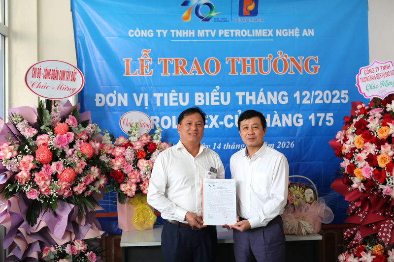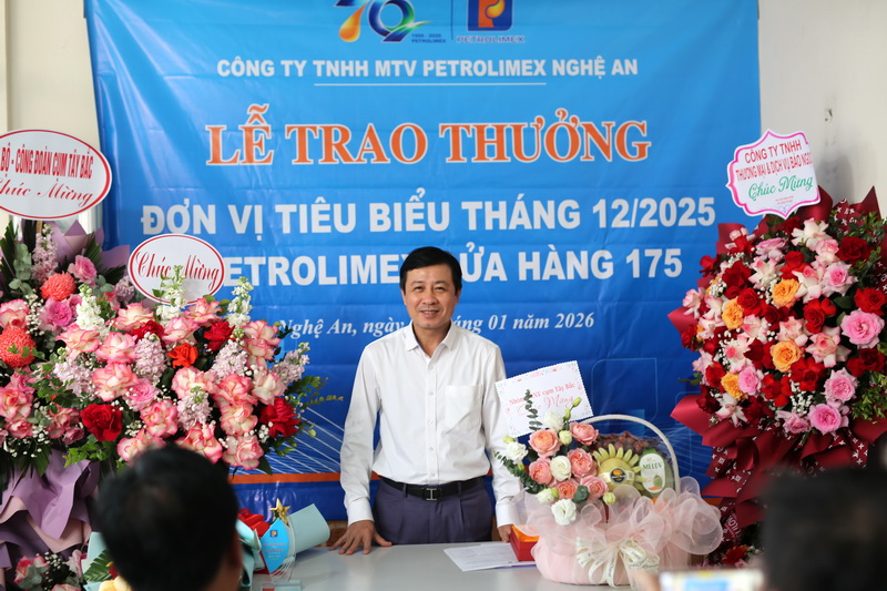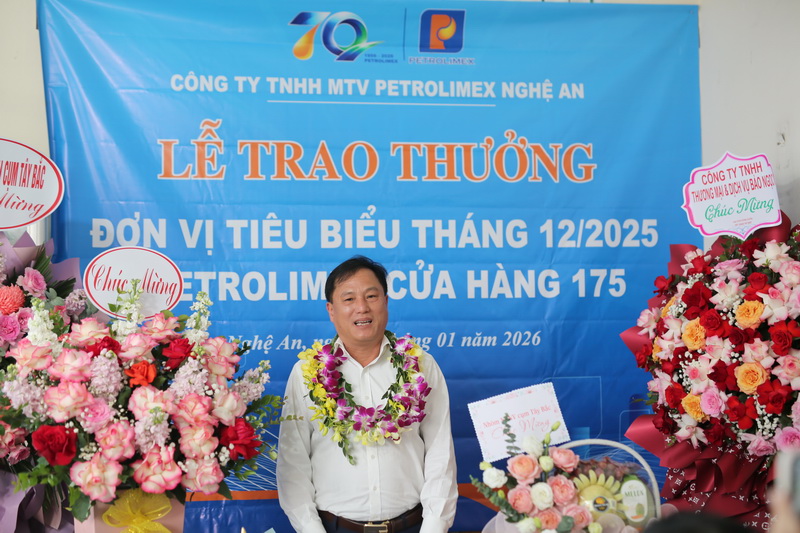 Chiều ngày 14/01/2026, tại Petrolimex - Cửa hàng 175 (Xuân Thành), Công ty TNHH MTV Petrolimex Nghệ An đã tổ chức lễ trao thưởng Đơn vị tiêu biểu tháng 12/2025 cho tập thể CBCNV cửa hàng. Đây là lần thứ 5 Petrolimex - Cửa hàng 175 vinh dự nhận danh hiệu cao quý này minh chứng rõ ràng cho tinh thần trách nhiệm và quyết tâm duy trì chất lượng phục vụ khách hàng ở mức cao nhất.